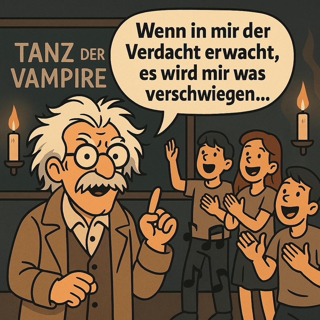 Rückblickend war es einer dieser Momente, die zeigen, wie kreativ, lebendig und mitreißend Unterricht sein kann, wenn man Herzblut hineinlegt. „Tanz der Vampire“ bleibt für mich bis heute ein Symbol dafür, dass Unterricht mehr sein darf als nur Stoffvermittlung – er darf Bühne, Erlebnis und Begeisterung sein.