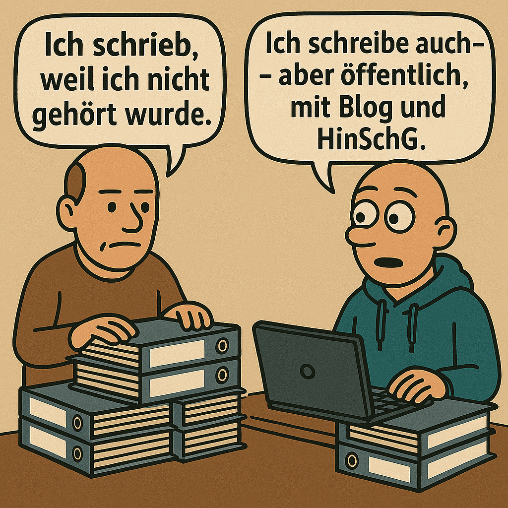 Und ebenso wie bei Mollath werden auch meine Eingaben oft vorschnell als „querulatorisch“ abgetan. Doch das ist der bequemste Weg, Kritik nicht ernst nehmen zu müssen. Ich halte mich strikt an den rechtlich vorgesehenen Rahmen. Ich dokumentiere jeden Schritt, beziehe mich auf Gesetze, auf Akten, auf Verfahren. Außerdem nutze ich heute Möglichkeiten, die Mollath damals gar nicht hatte: das Hinweisgeberschutzgesetz mit internen und externen Meldestellen – siehe auch meinen Beitrag vom 28.04.2025 (Link).